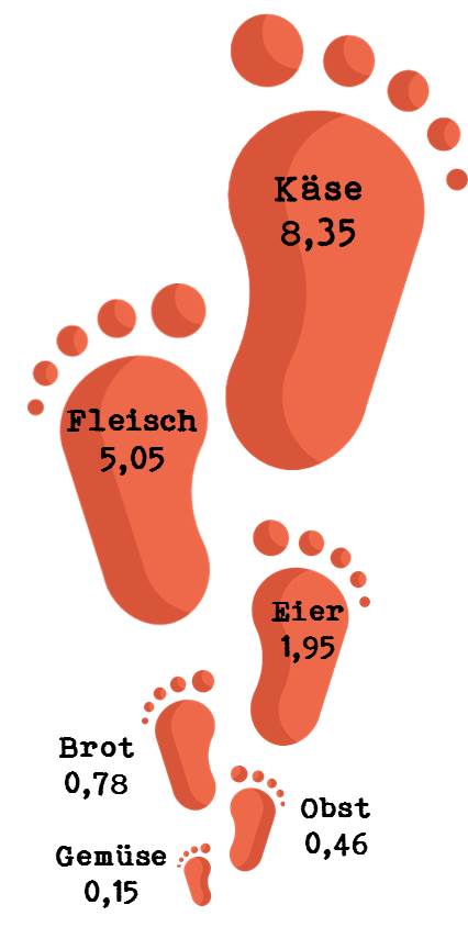 Wie wir uns ernähren, hat Auswirkungen auf die Umwelt. Jedes Nahrungsmittel verursacht bei seiner Produktion, dem Transport oder der Verarbeitung seinen eigenen ökologischen Fußabdruck. 15% der Treibhausgasemissionen aus privatem Konsum stammen aus der Ernährungswirtschaft. Damit ist die Ernährung der drittgrößte Faktor nach Mobilität und Wohnen. Das Öko-Institut e.V. hat sich die Mühe gemacht, diese Fußabdrücke zu quantifizieren.